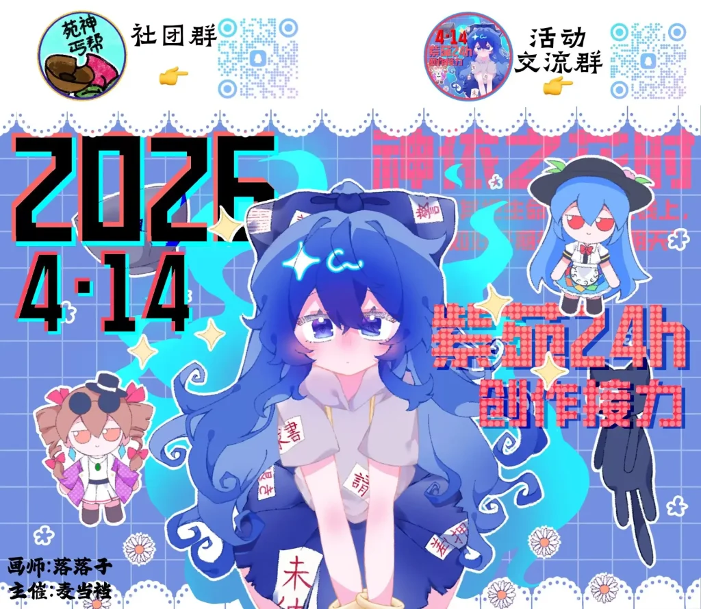 -不限形式,包括绘画作品、同人手书、同人文、MMD、mad/音mad、同人音乐、翻唱/翻弹、舞蹈/cos等等,皆可以参加本次接力活动