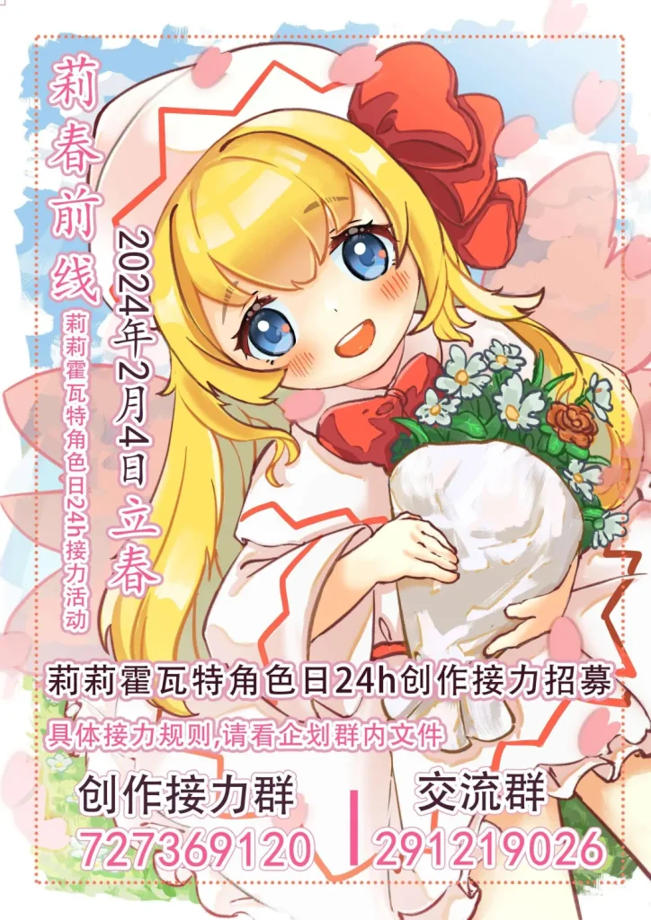 第一届立春莉莉-莉莉霍瓦特角色日24h创作接力,请前往莉莉白接力官网lilywhite.fun查看接力作品。