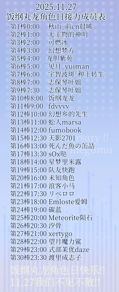11月27日饭纲丸龙之日接力活动,完美结束了!感谢大家的参与!也感谢看到这里的你!